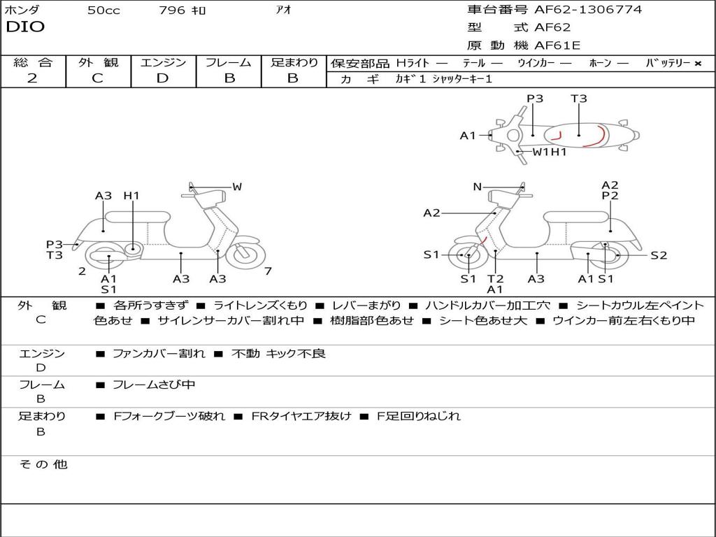 | Номер рамы / VIN | AF62-1306774 |