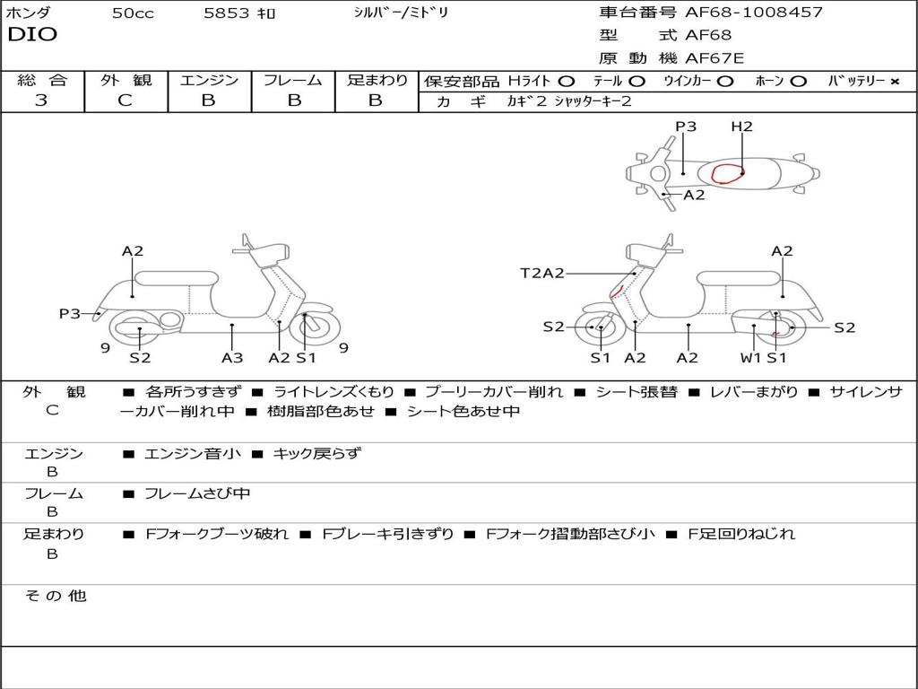 | Номер рамы / VIN | AF68-1008457 |