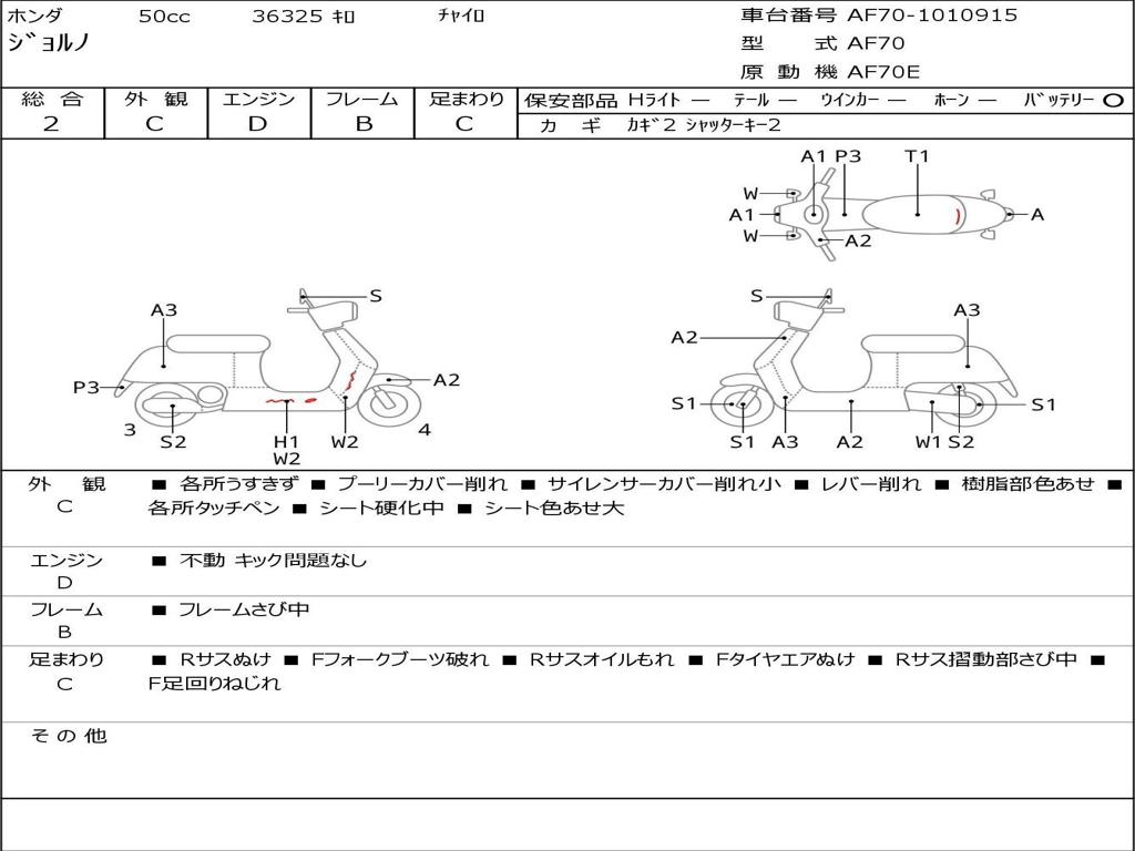 | Номер рамы / VIN | AF70-1010915 |