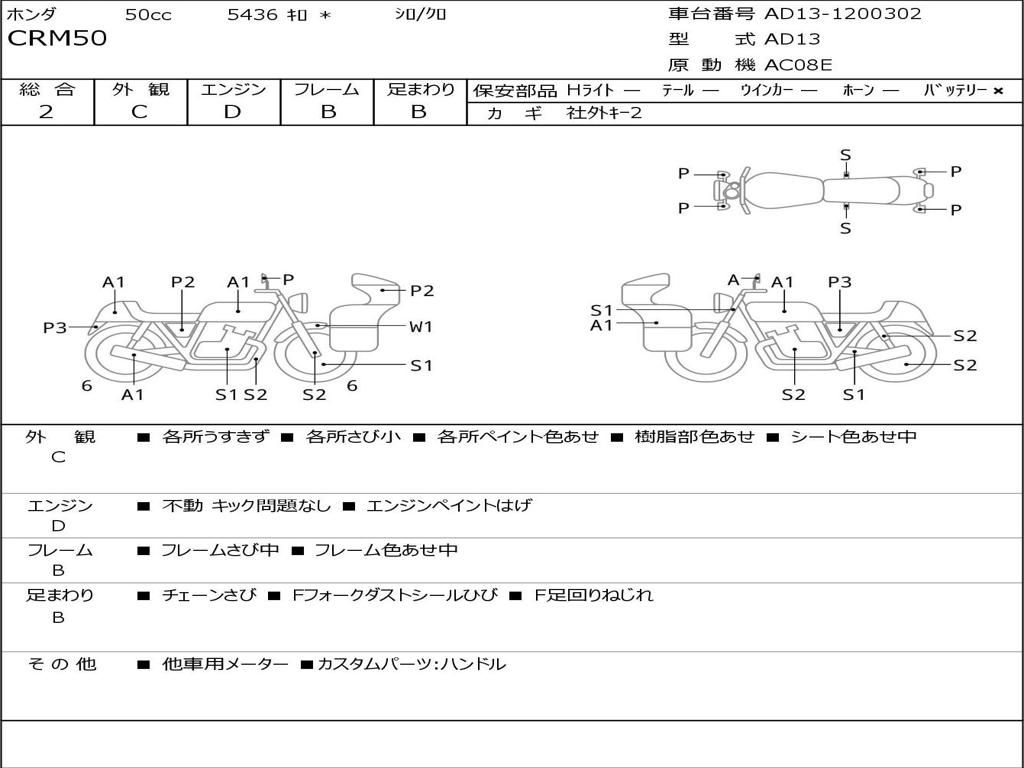 | Номер рамы / VIN | AD13-1200302 |