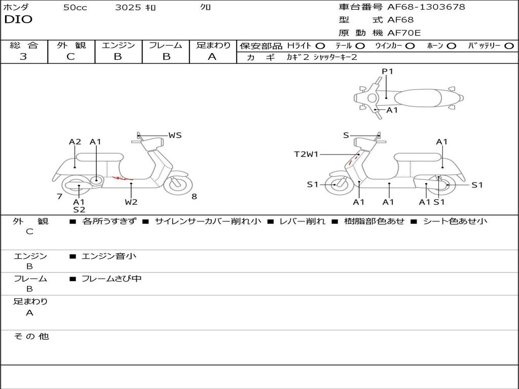 | Номер рамы / VIN | AF68-1303678 |