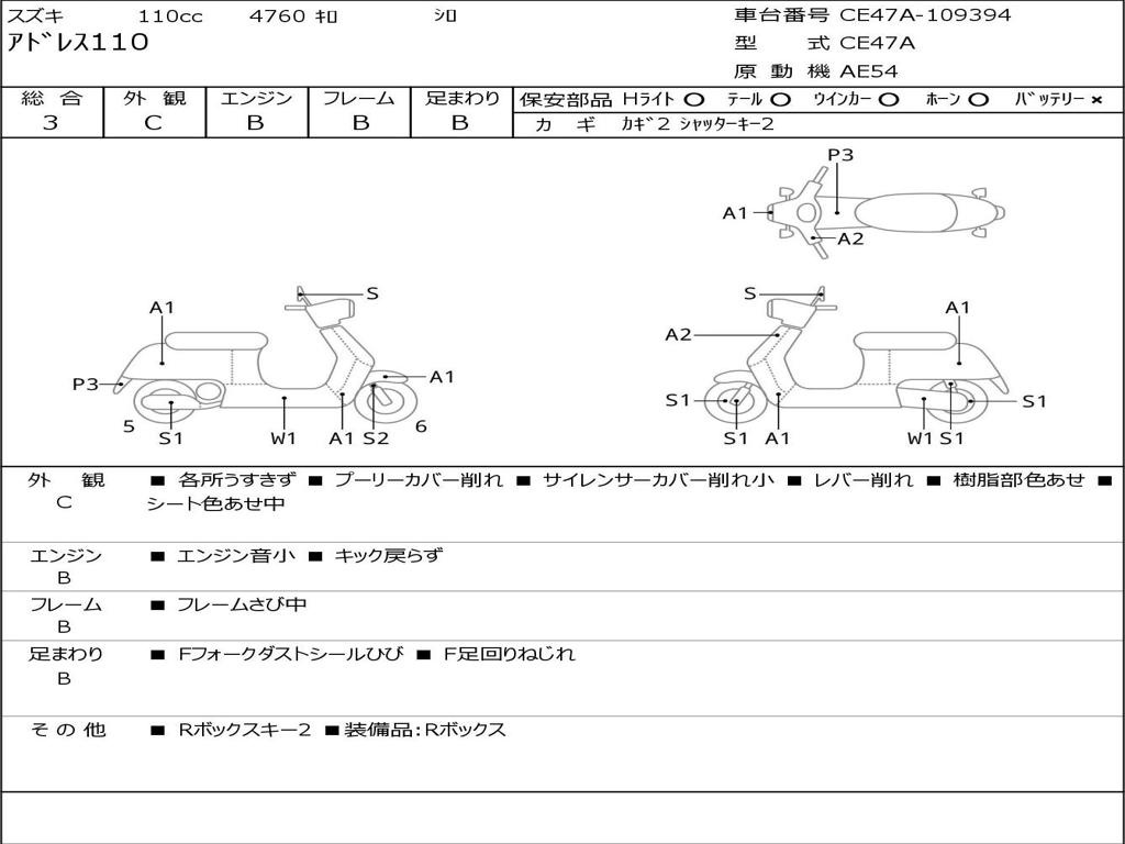 | Номер рамы / VIN | CE47A-109394 |