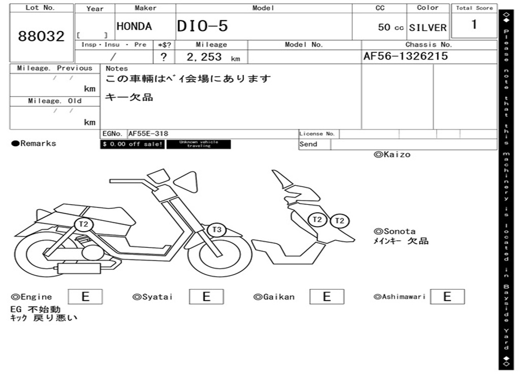 | Номер рамы / VIN | AF56-1326215 |