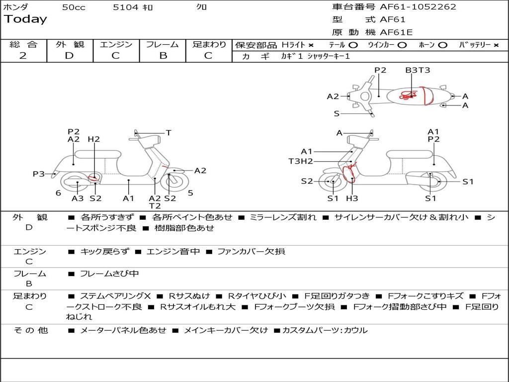 | Номер рамы / VIN | AF61-1052262 |