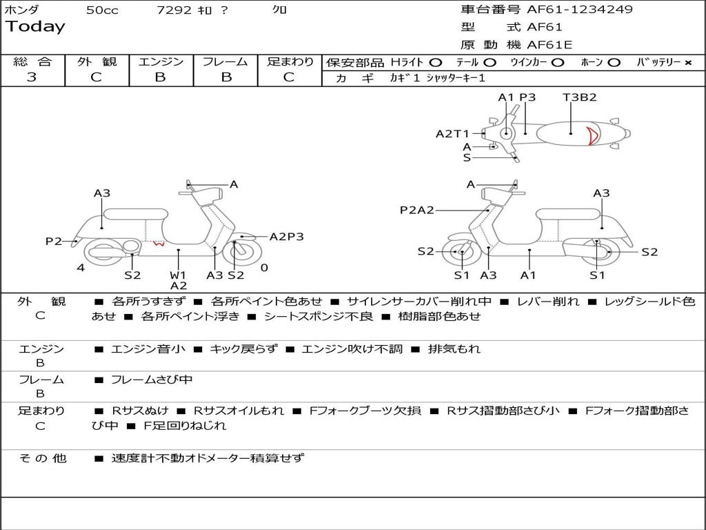| Номер рамы / VIN | AF61-1234249 |