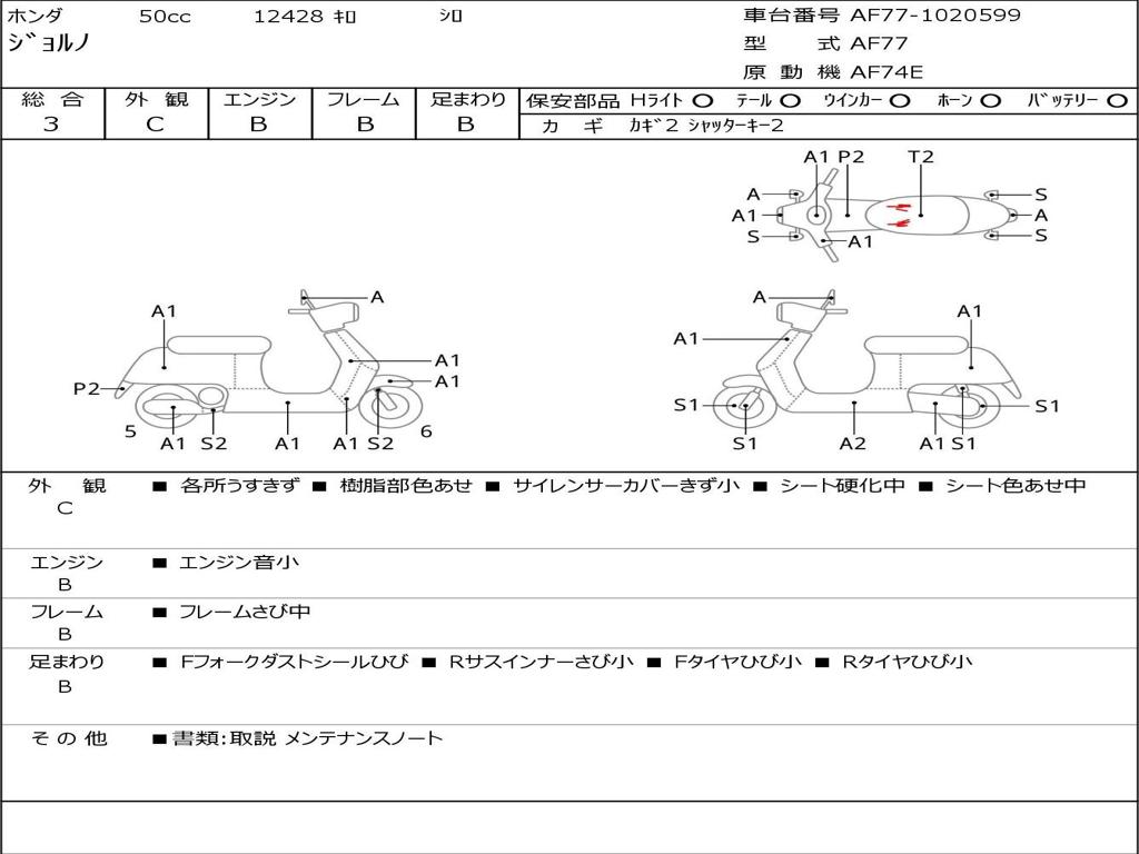 | Номер рамы / VIN | AF77-1020599 |