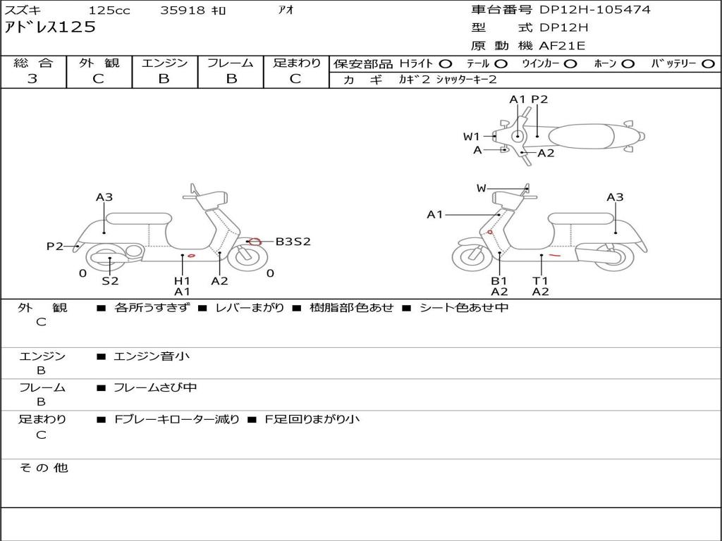 | Номер рамы / VIN | DP12H-105474 |