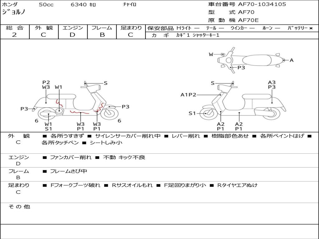 | Номер рамы / VIN | AF70-1034105 |