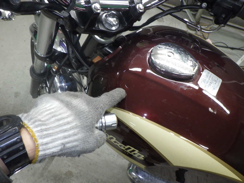 | бензобак | царапины <много>, вмятина, следы коррозии, частичная подкраска, потертость краски |