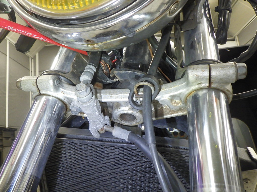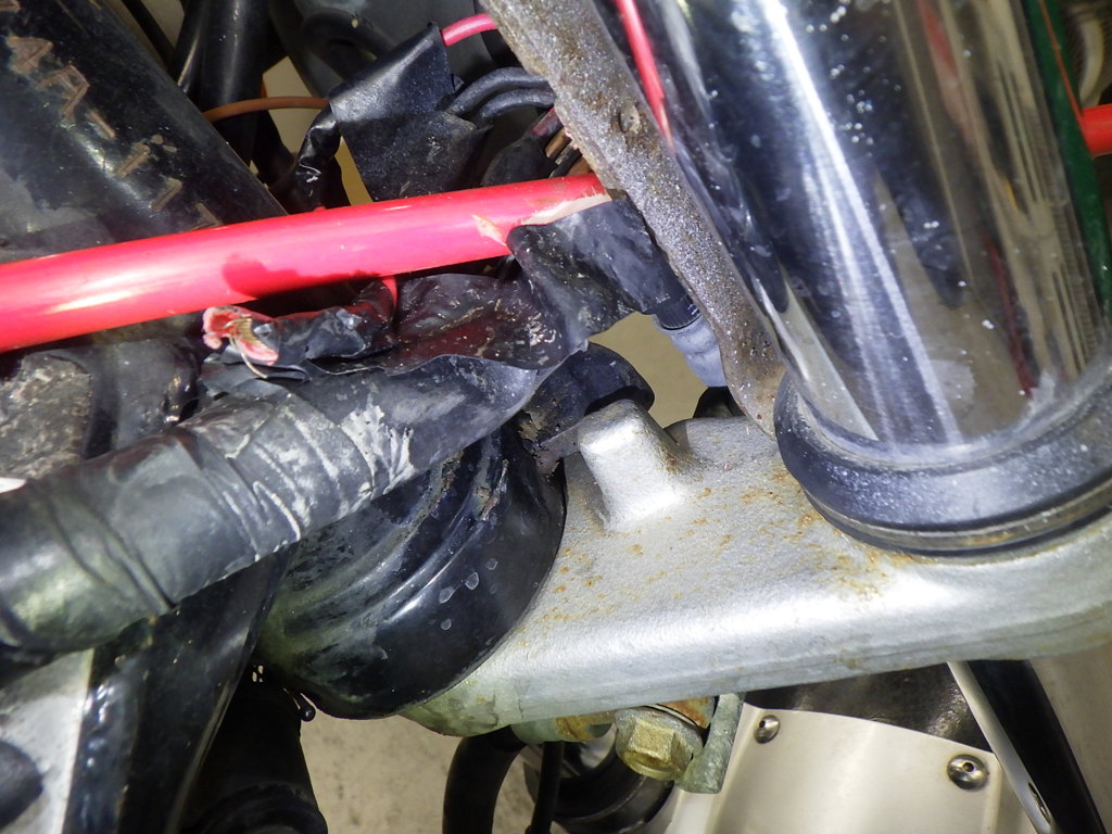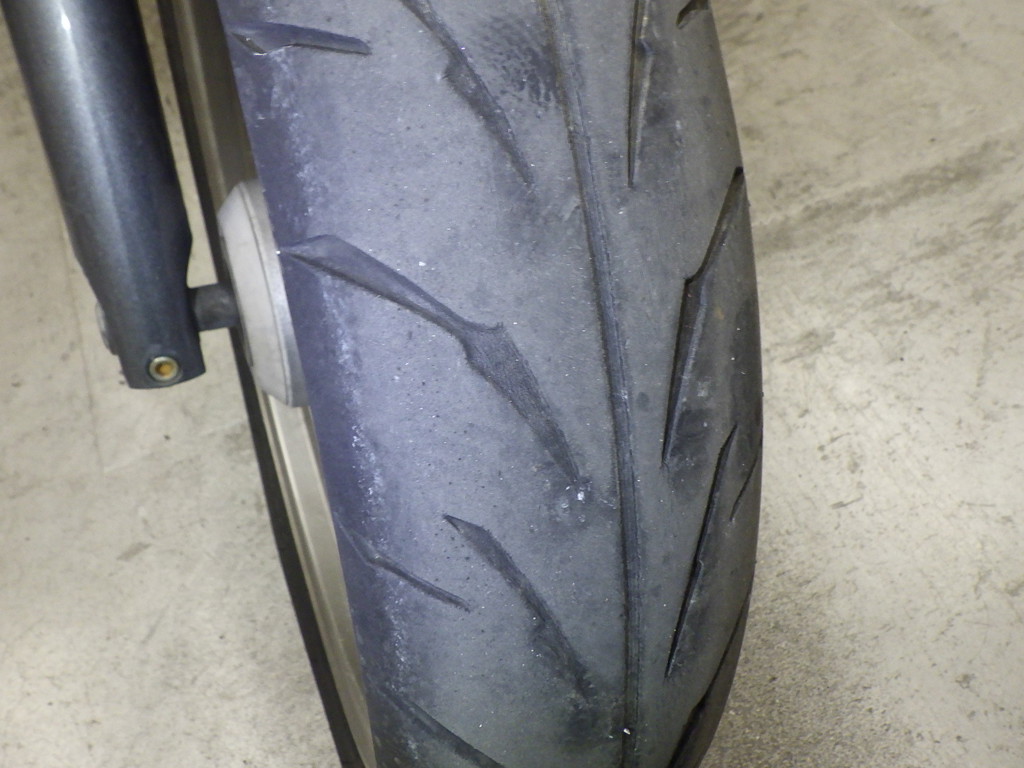 | внешняя часть вилки | царапины <много>, потертость, потек масла <немного> |