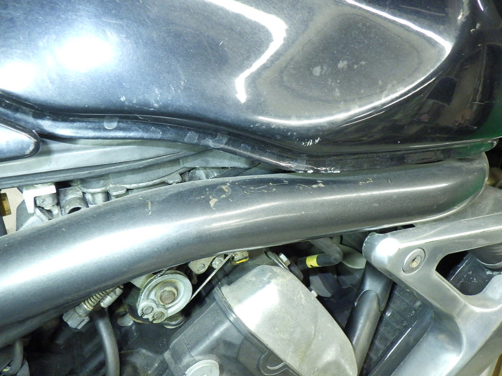 | бензобак | царапины <много>, вмятина, неисправен шарнир |