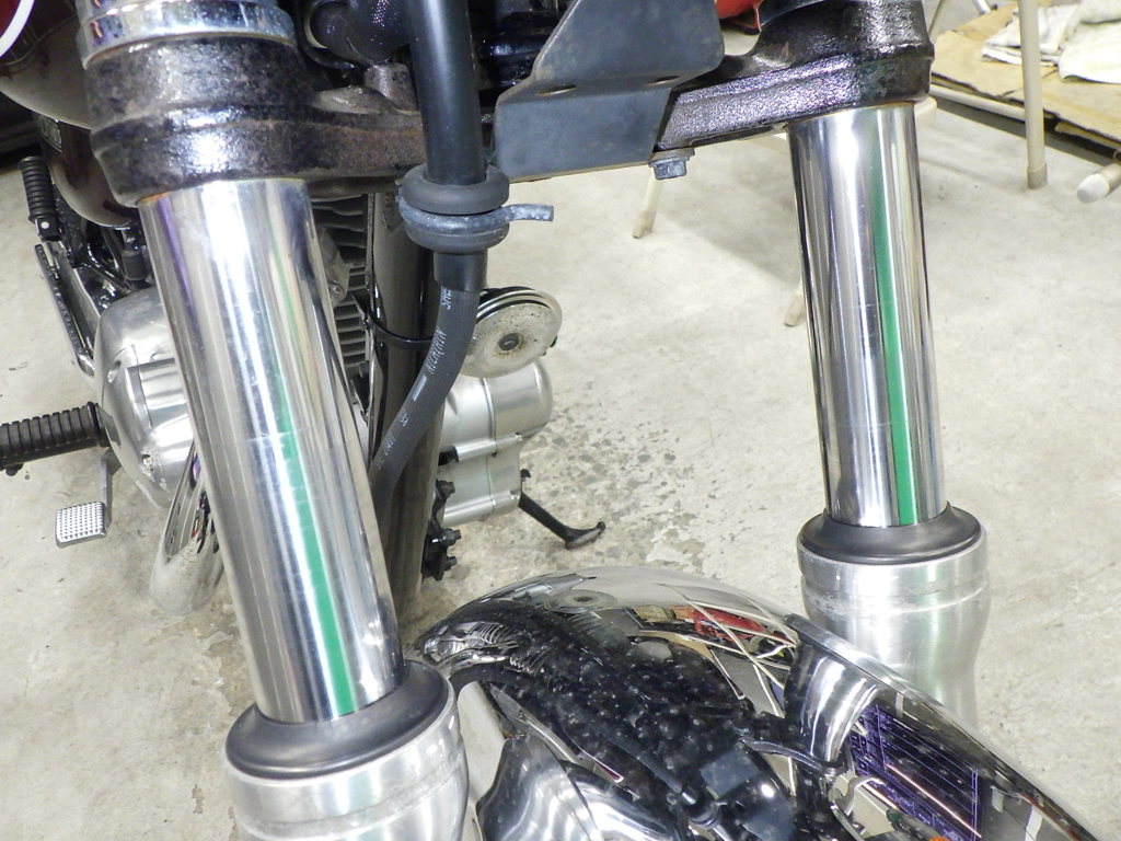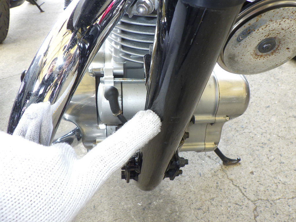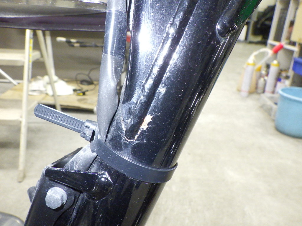 | внешняя часть вилки | царапины, rust paint, вздутие <средне>, потек масла <немного> |