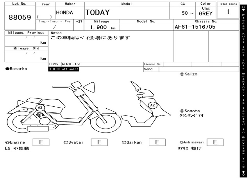 | Номер рамы / VIN | AF61-1516705 |