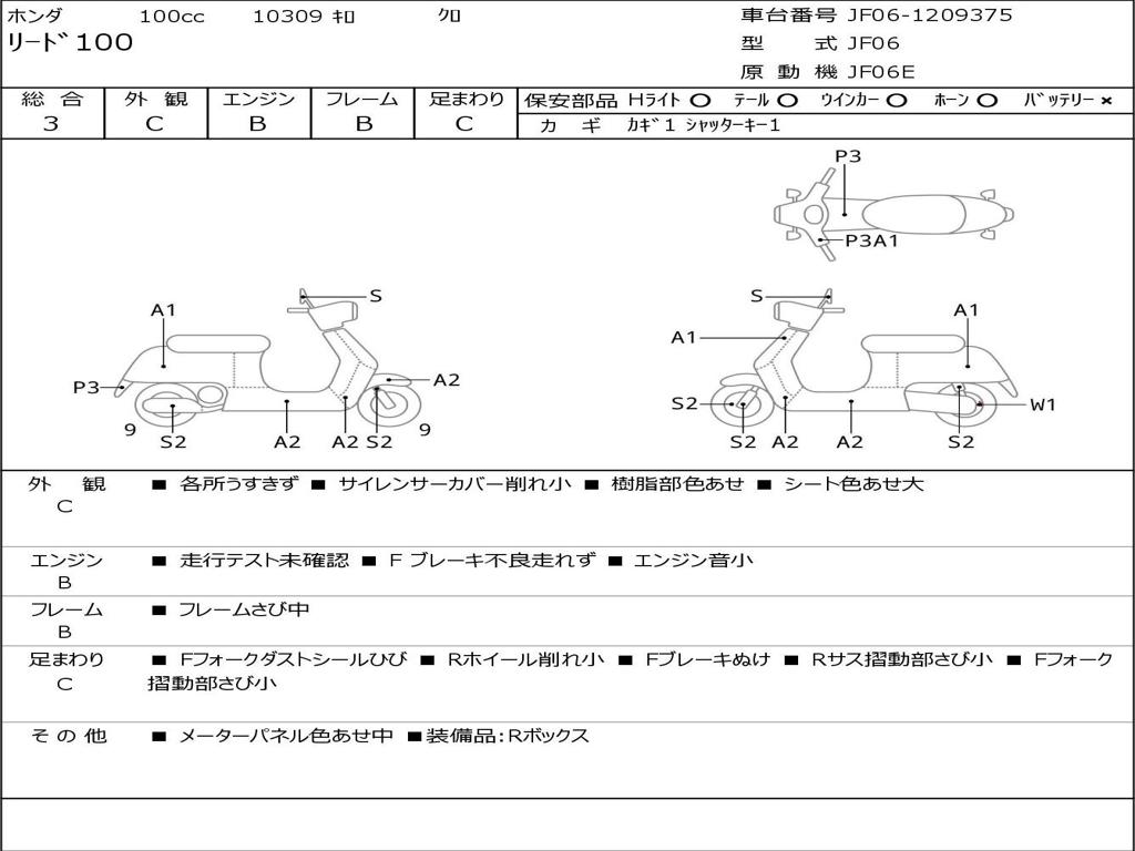 | Номер рамы / VIN | JF06-1209375 |