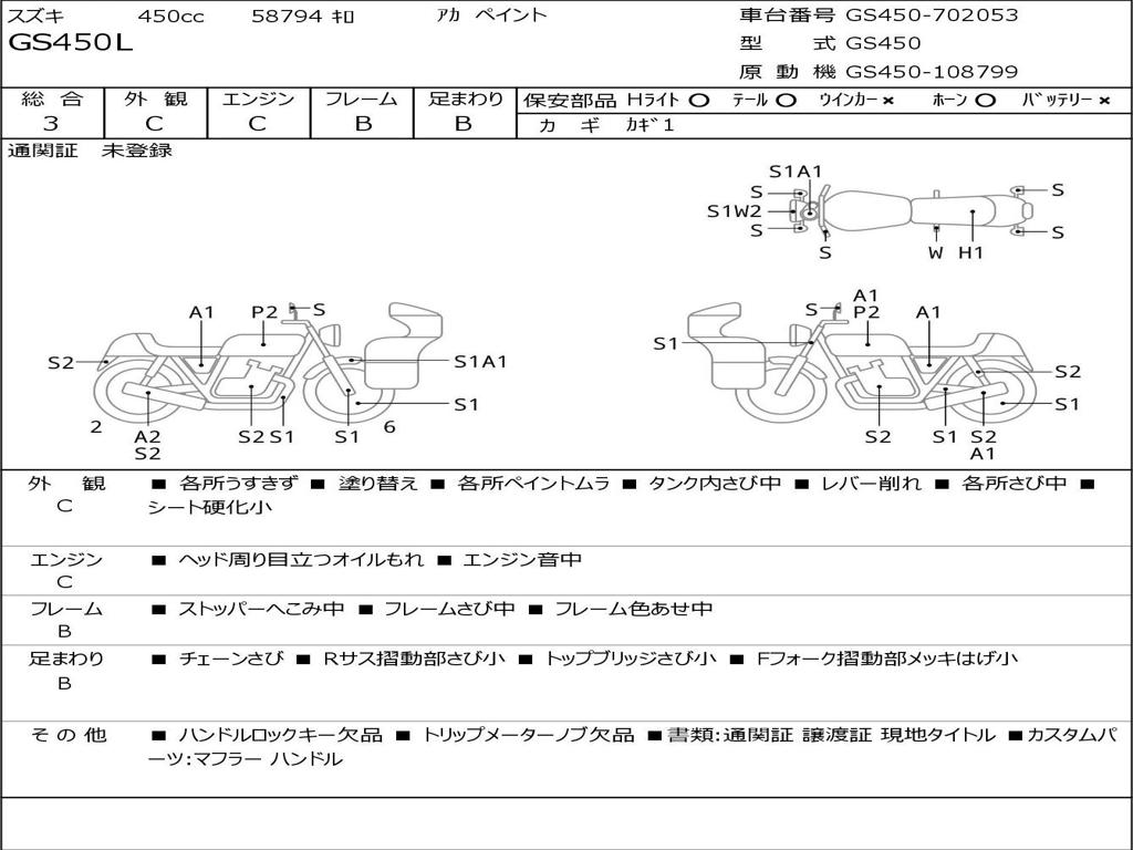 | Номер рамы / VIN | GS450-702053 |