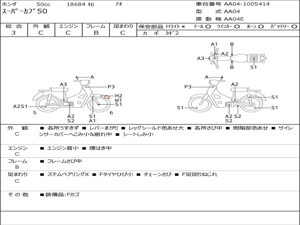 | Номер рамы / VIN | AA04-1005414 |