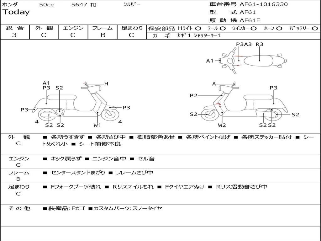 | Номер рамы / VIN | AF61-1016330 |
