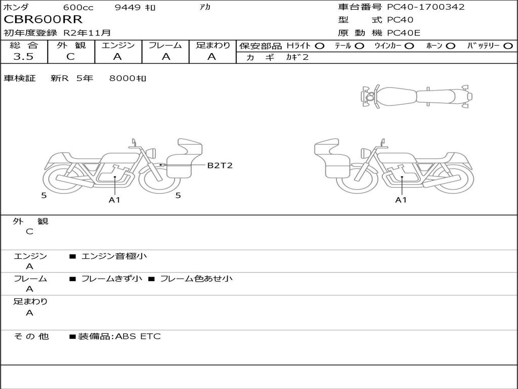 | Номер рамы / VIN | PC40-1700342 |