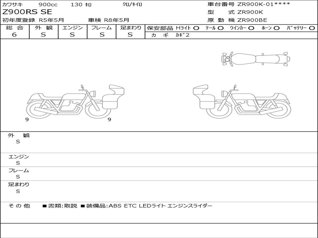 | Номер рамы / VIN | ZR900K-019269 |