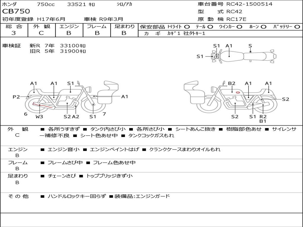 | Номер рамы / VIN | RC42-1500514 |
