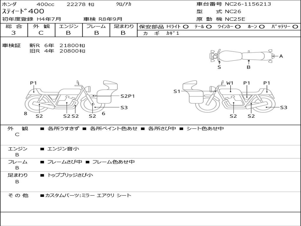 | Номер рамы / VIN | NC26-1156213 |