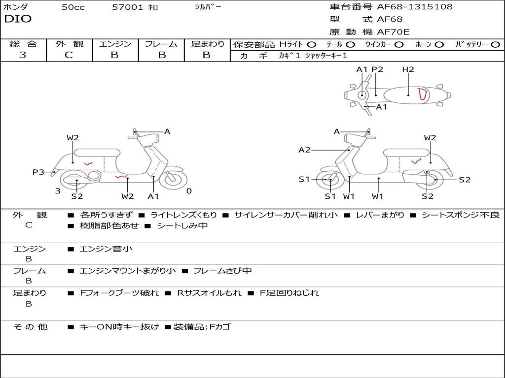 | Номер рамы / VIN | AF68-1315108 |
