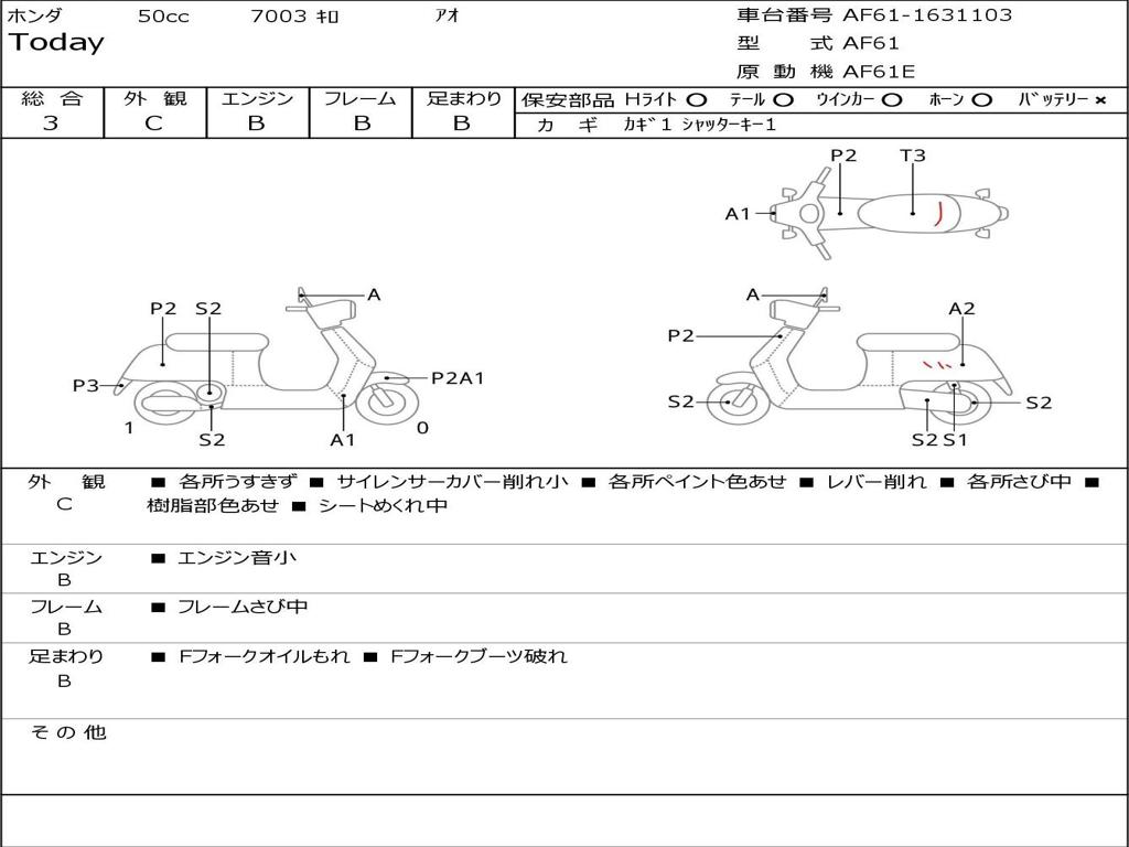 | Номер рамы / VIN | AF61-1631103 |