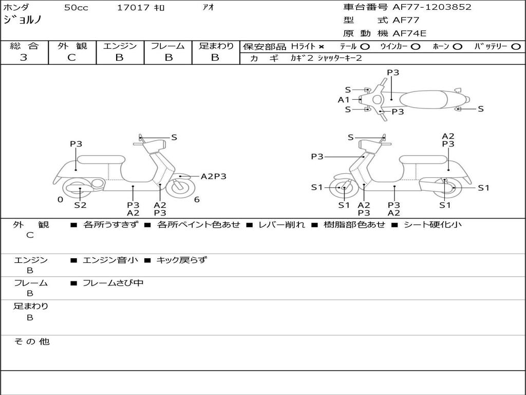 | Номер рамы / VIN | AF77-1203852 |