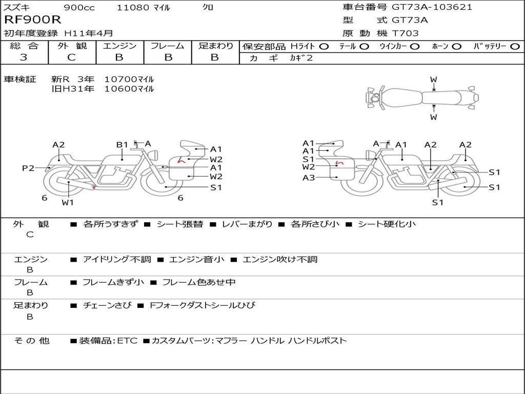 | Номер рамы / VIN | GT73A-103621 |