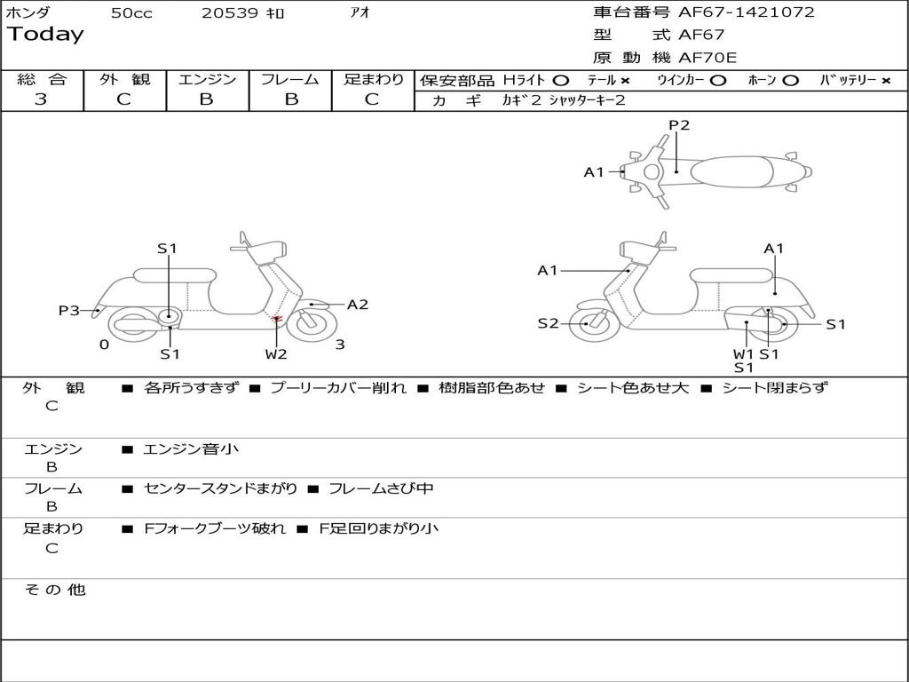 | Номер рамы / VIN | AF67-1421072 |