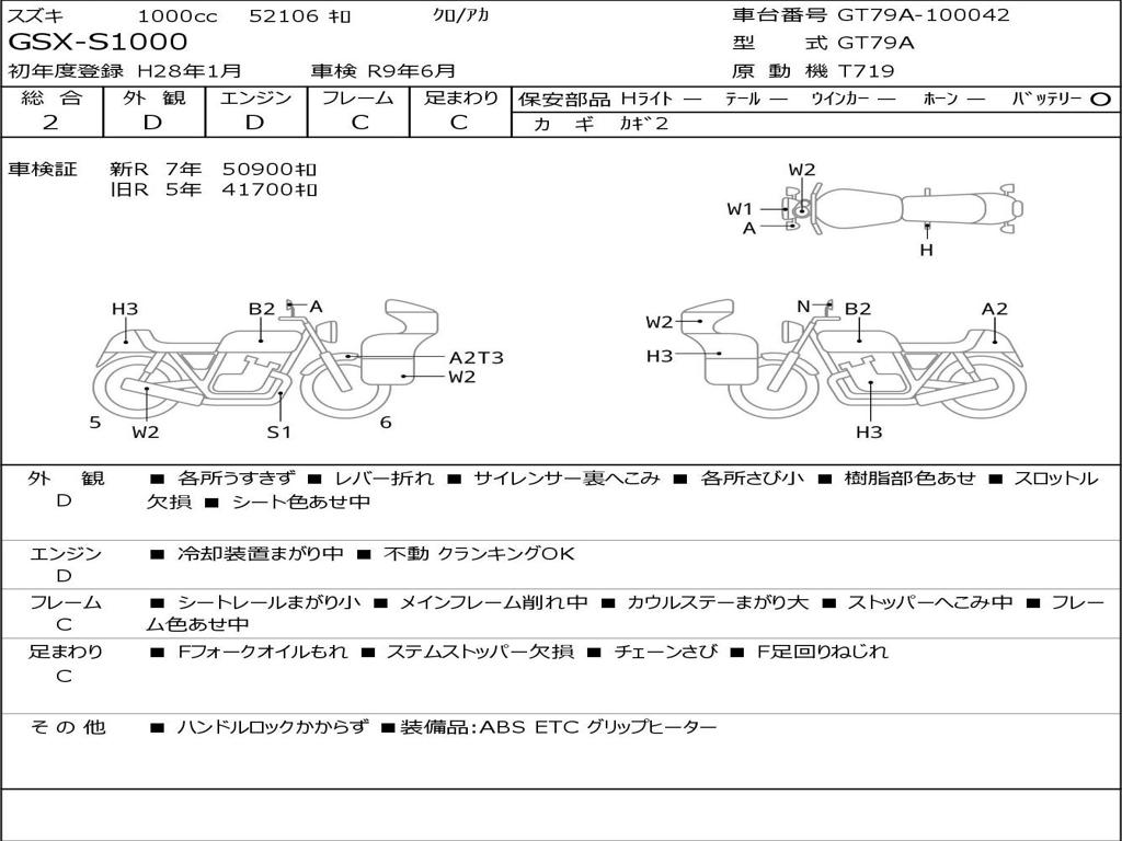 | Номер рамы / VIN | GT79A-100042 |