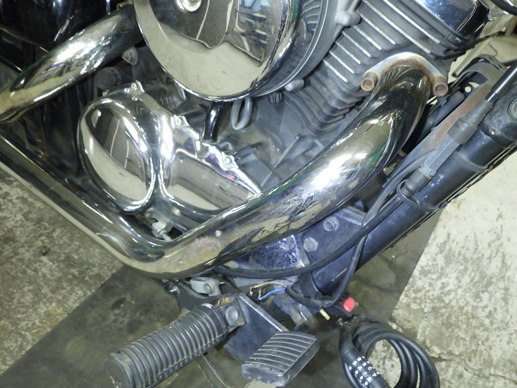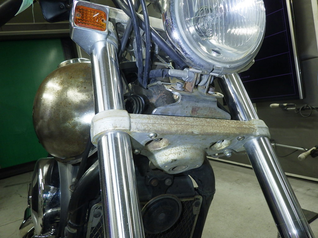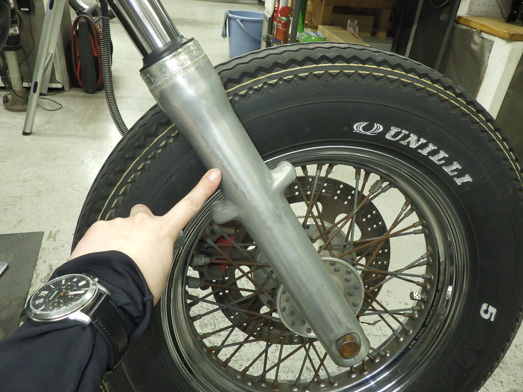 | внешняя часть вилки | следы коррозии <много>, полирован., потертость, неисправен сальник |