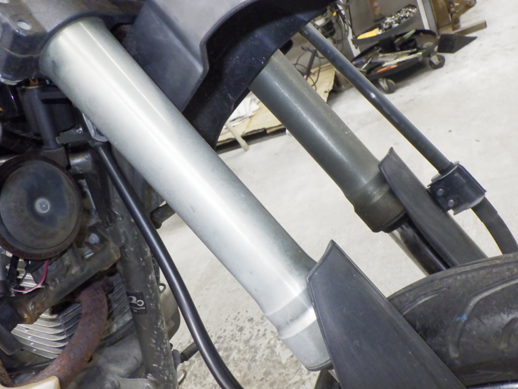 | внешняя часть вилки | следы коррозии, потек масла <много>, неисправен сальник |