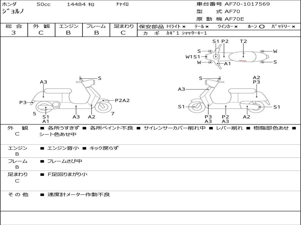 | Номер рамы / VIN | AF70-1017569 |