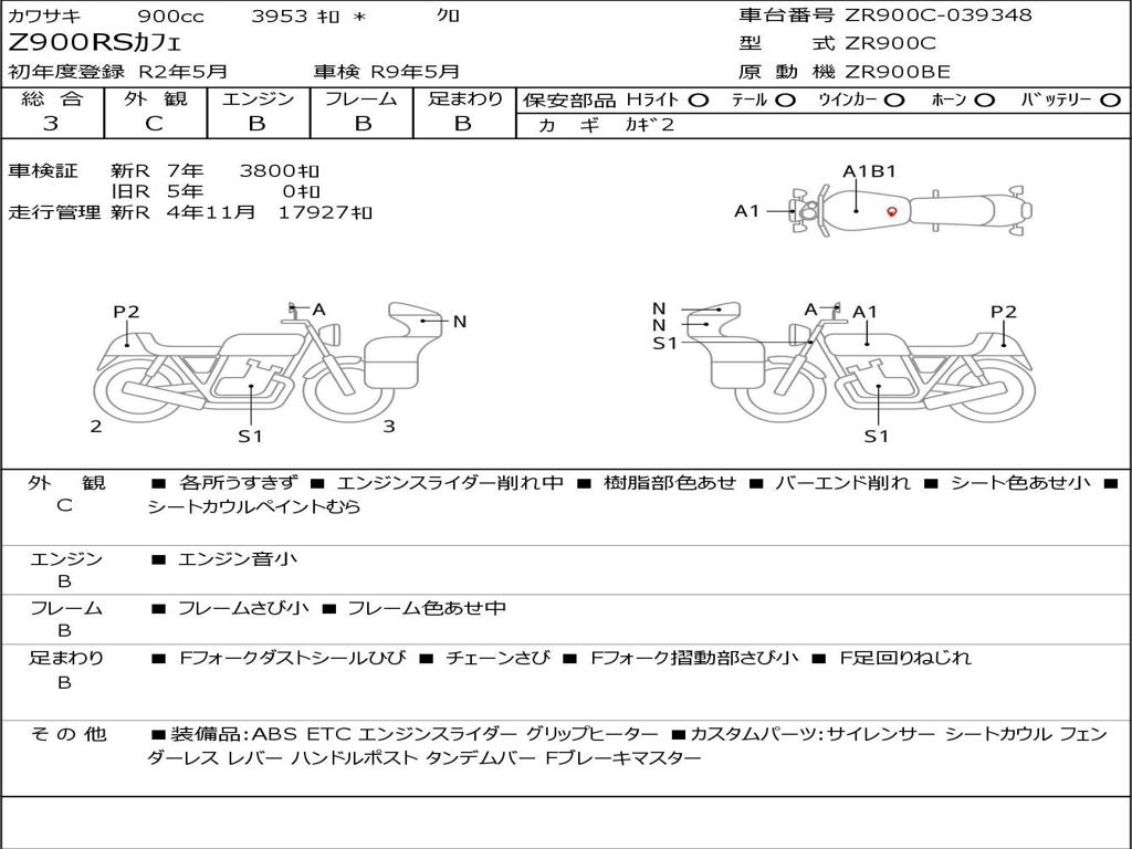 | Номер рамы / VIN | ZR900C-039348 |