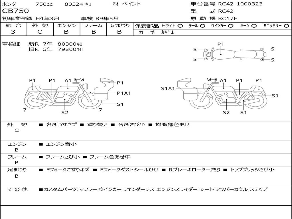 | Номер рамы / VIN | RC42-1000323 |