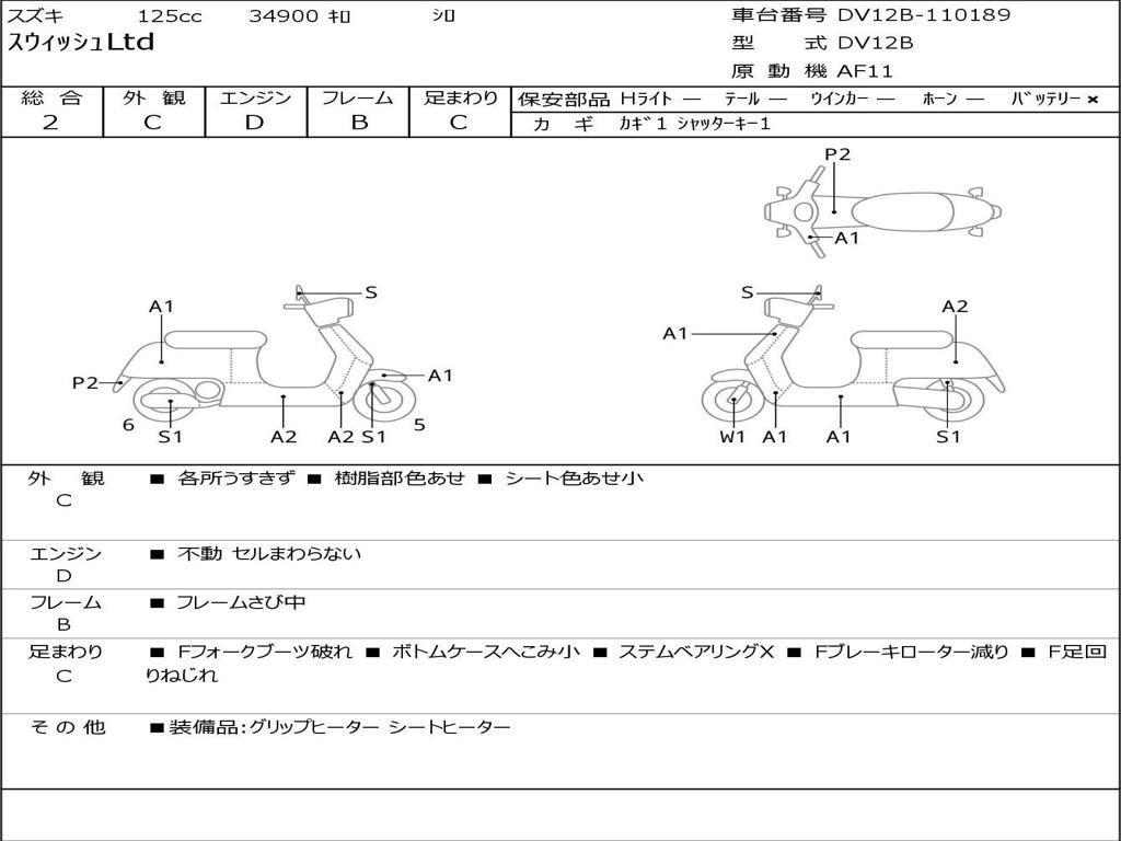| Номер рамы / VIN | DV12B-110189 |