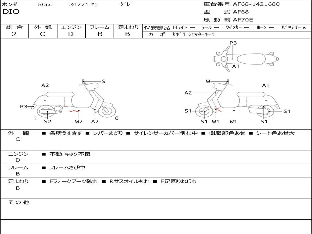 | Номер рамы / VIN | AF68-1421680 |