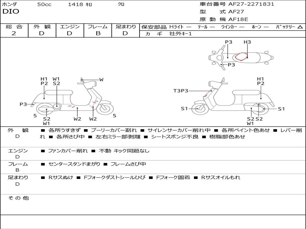 | Номер рамы / VIN | AF27-2271831 |