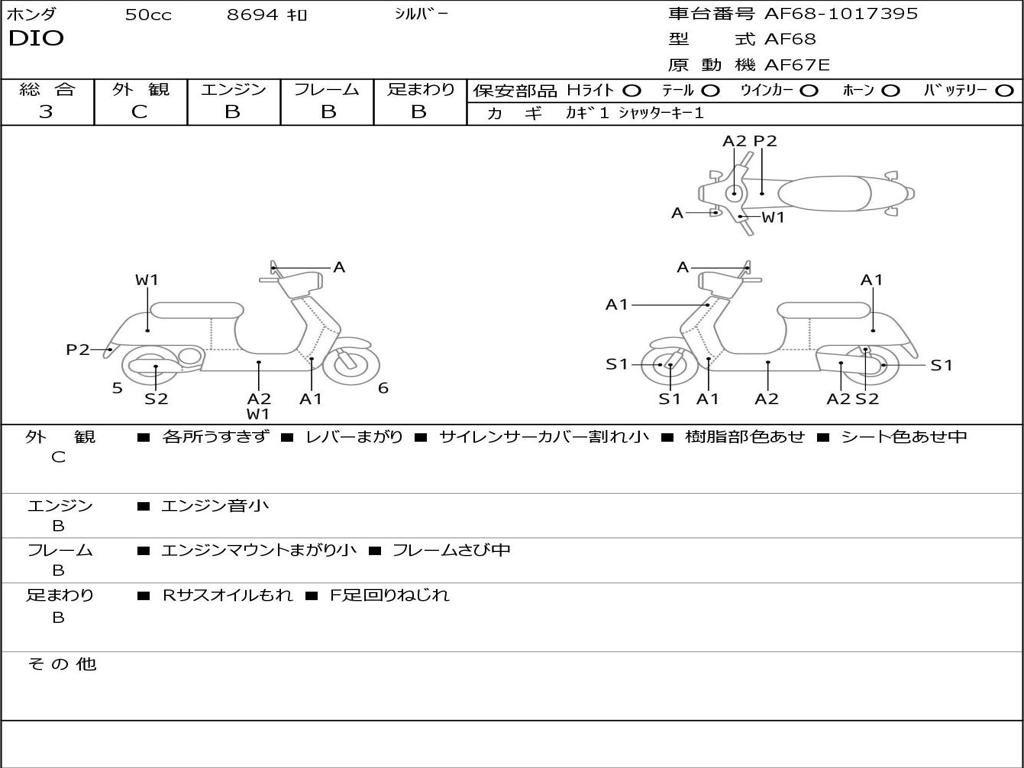 | Номер рамы / VIN | AF68-1017395 |