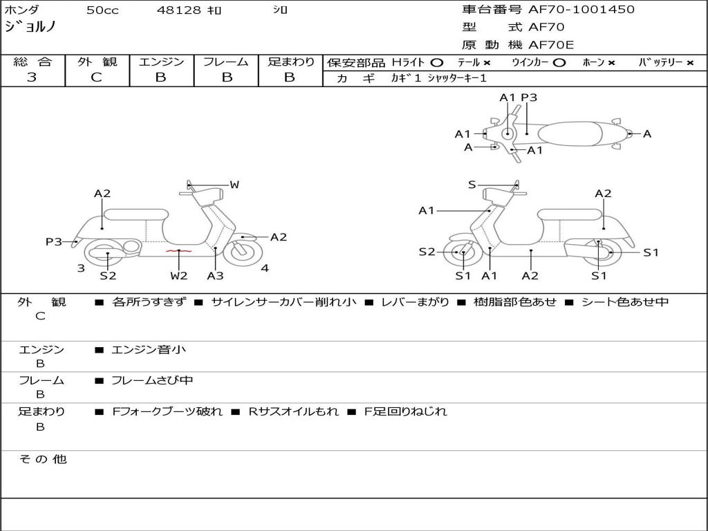 | Номер рамы / VIN | AF70-1001450 |