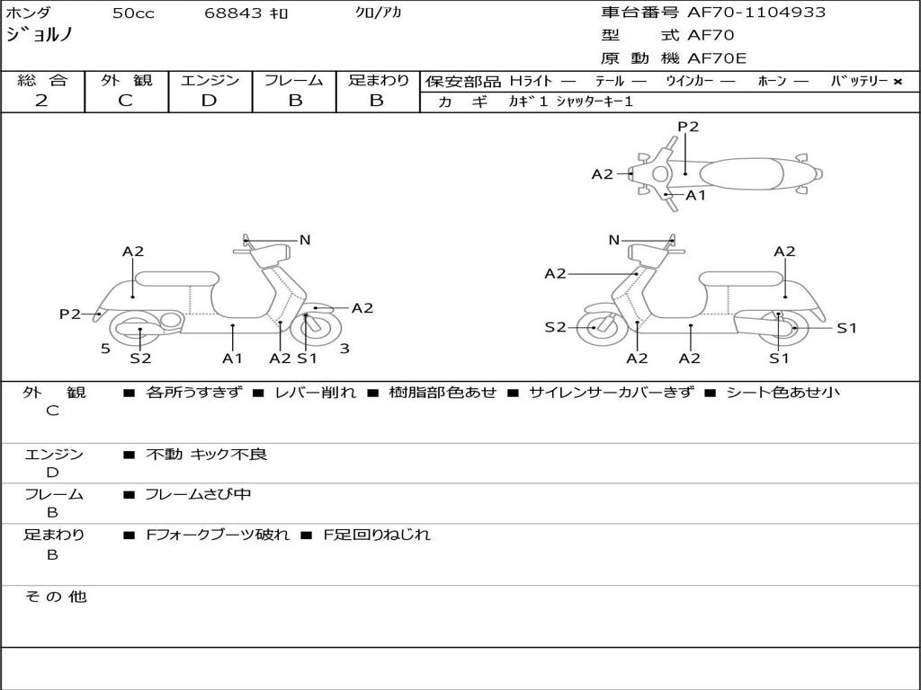 | Номер рамы / VIN | AF70-1104933 |