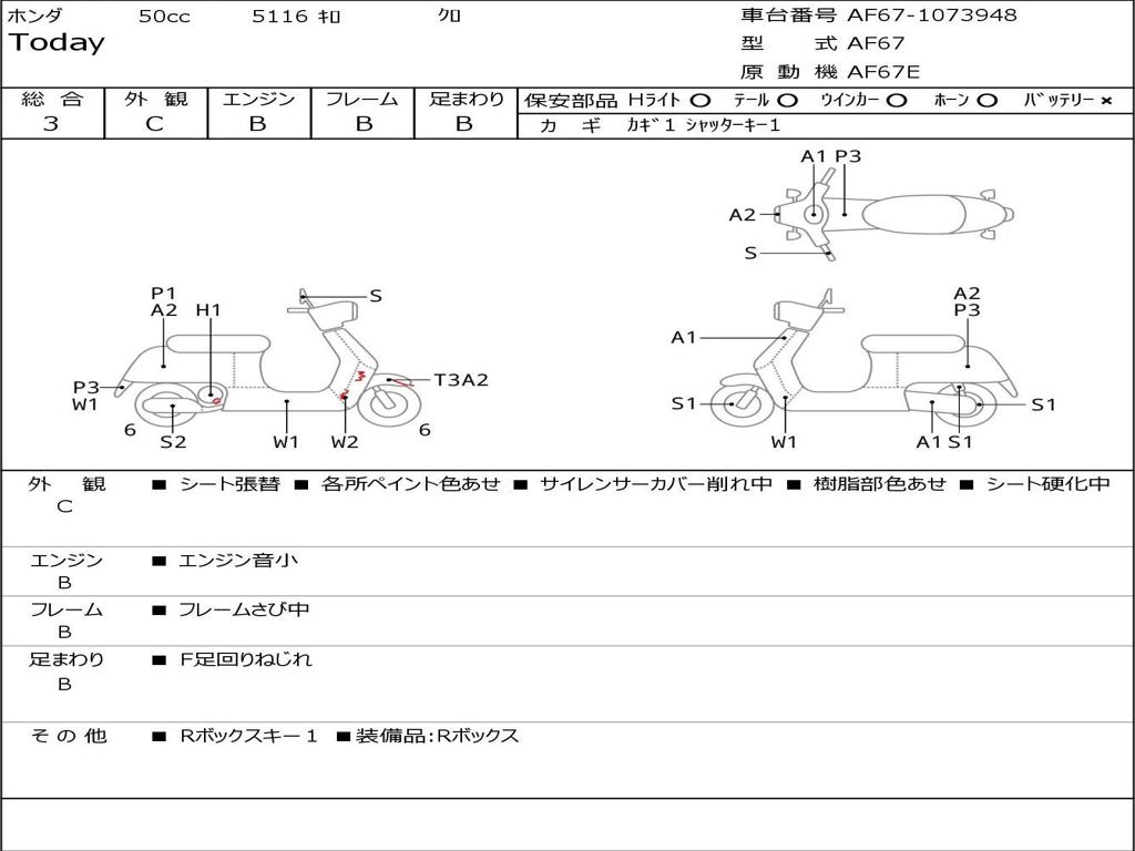 | Номер рамы / VIN | AF67-1073948 |