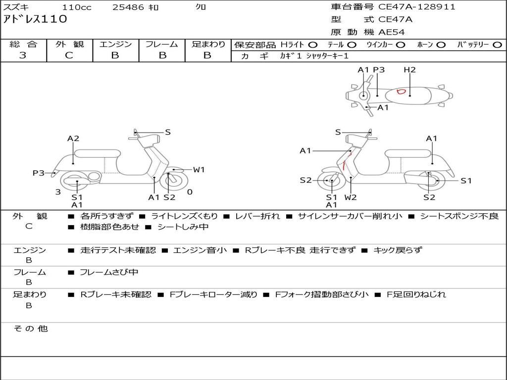 | Номер рамы / VIN | CE47A-128911 |
