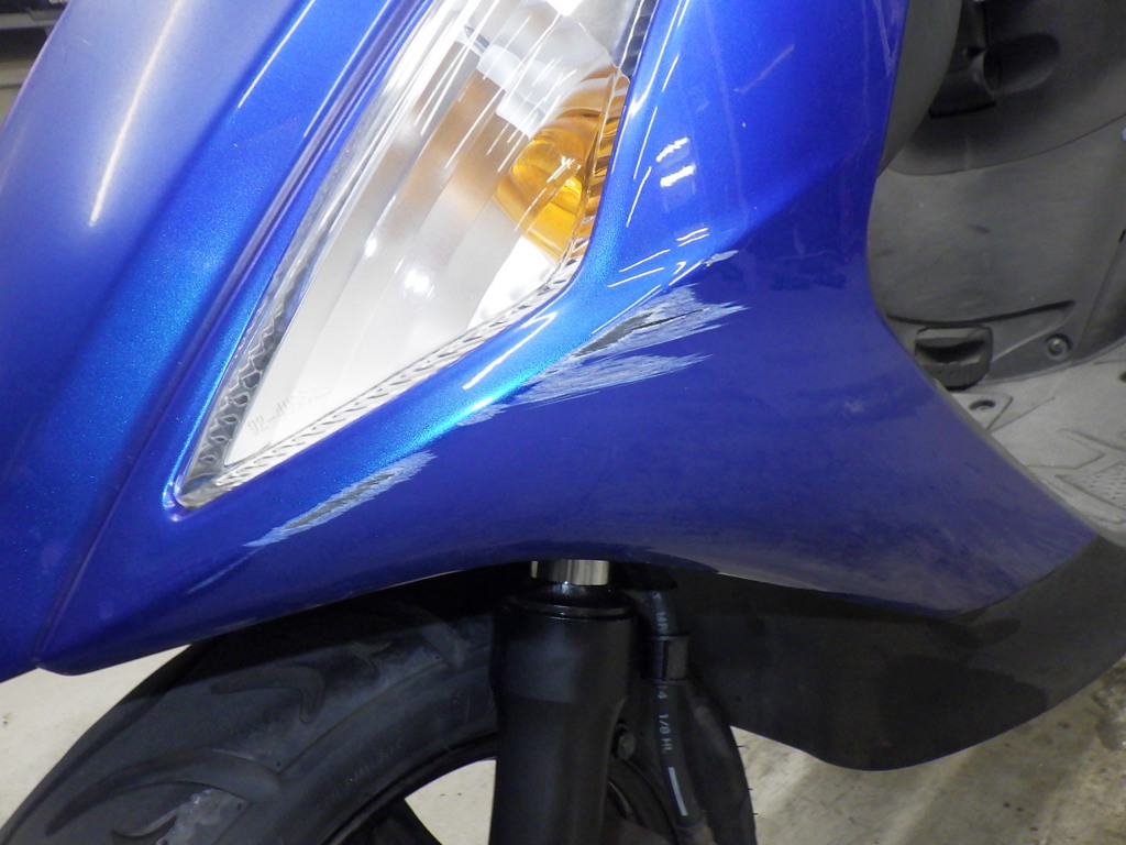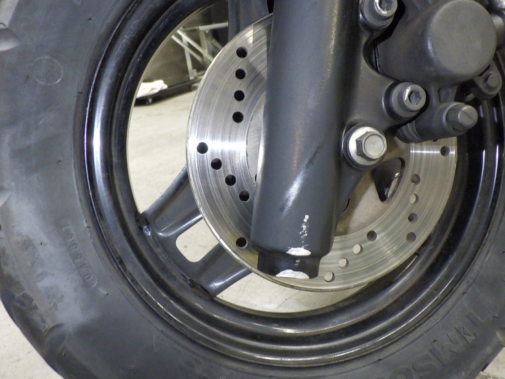 | внешняя часть вилки | потертость, потек масла <много> |