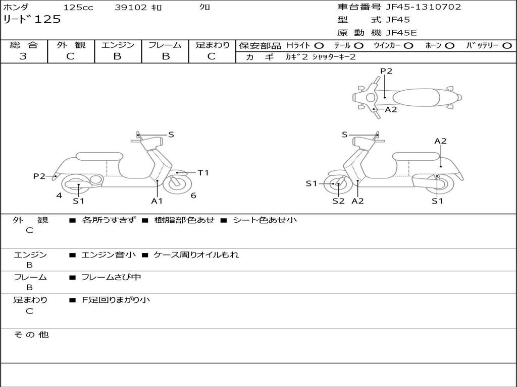 | Номер рамы / VIN | JF45-1310702 |