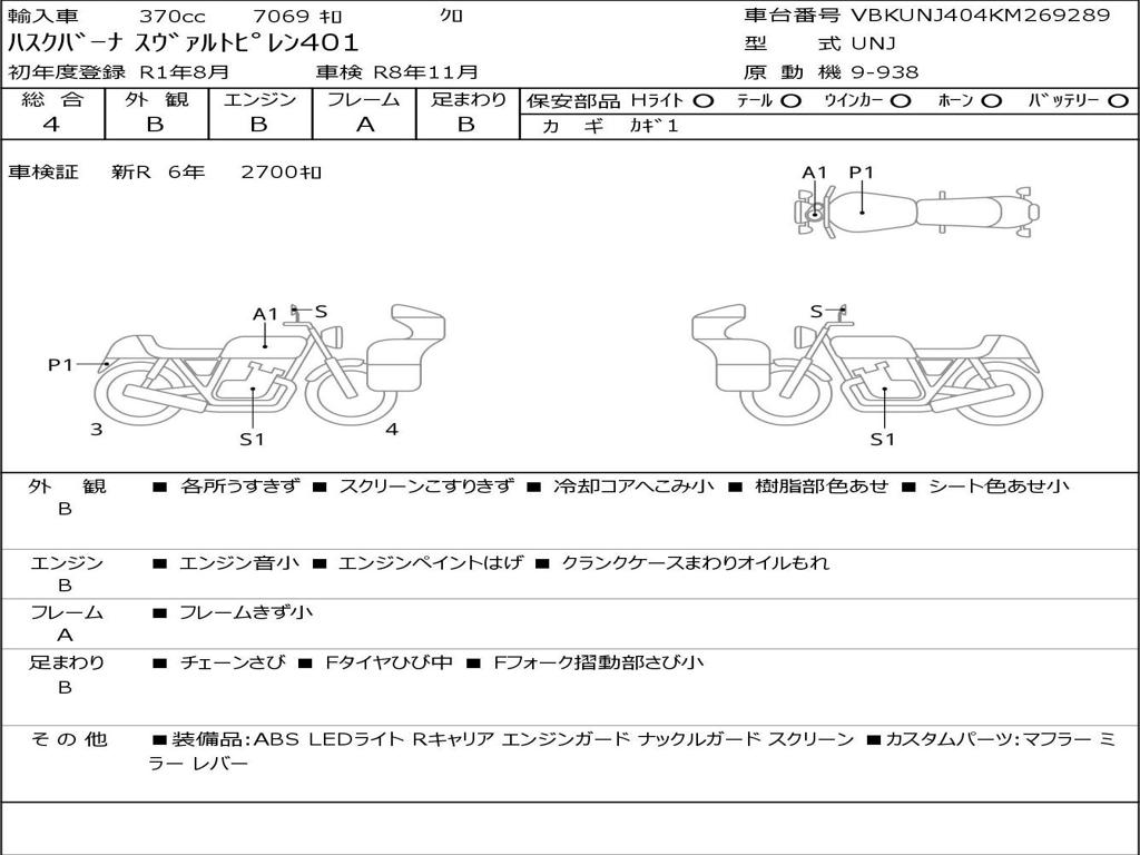 | Номер рамы / VIN | VBKUNJ404KM269289 |