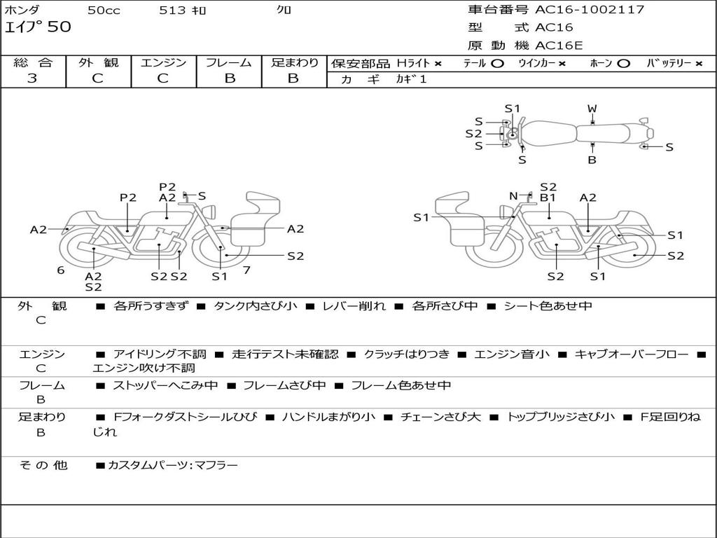 | Номер рамы / VIN | AC16-1002117 |