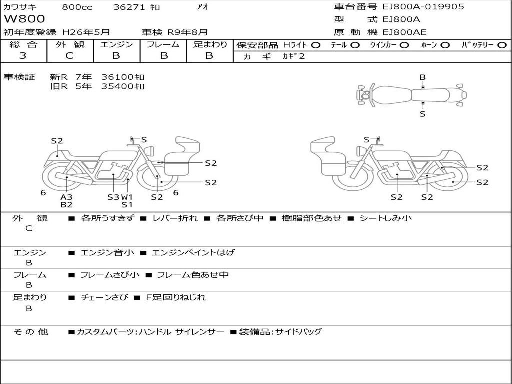 | Номер рамы / VIN | EJ800A-019905 |