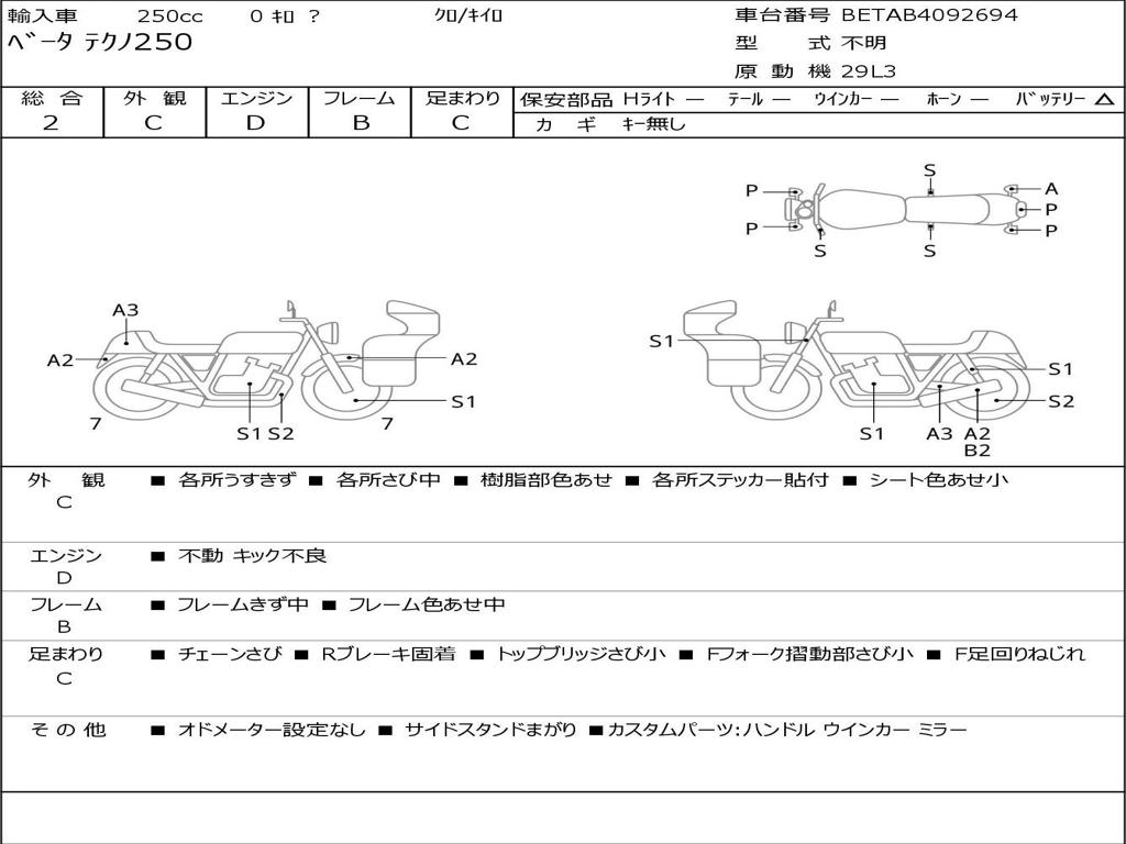 | Номер рамы / VIN | BETAB4092694 |